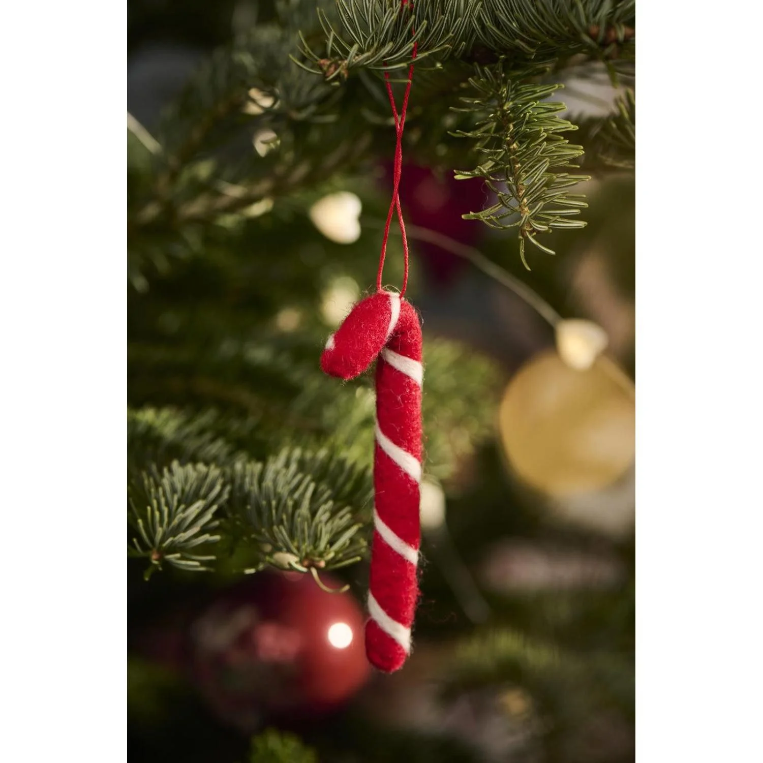 Christbaumschmuck Zuckerstange aus Filz – Rot & Weiß