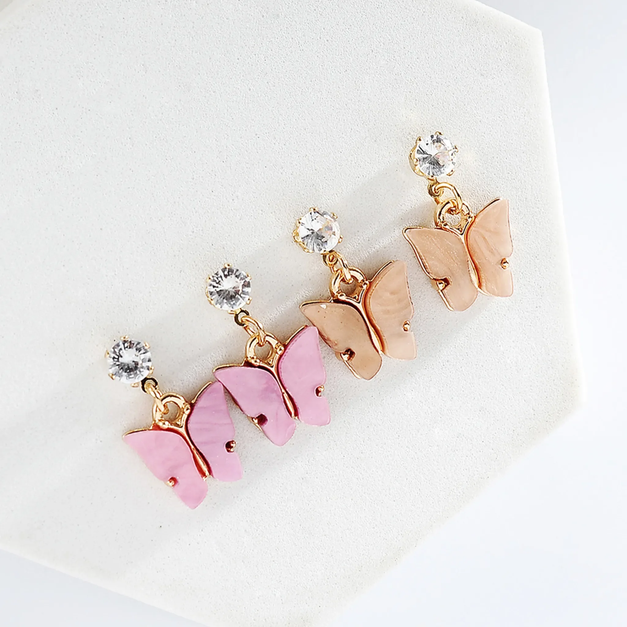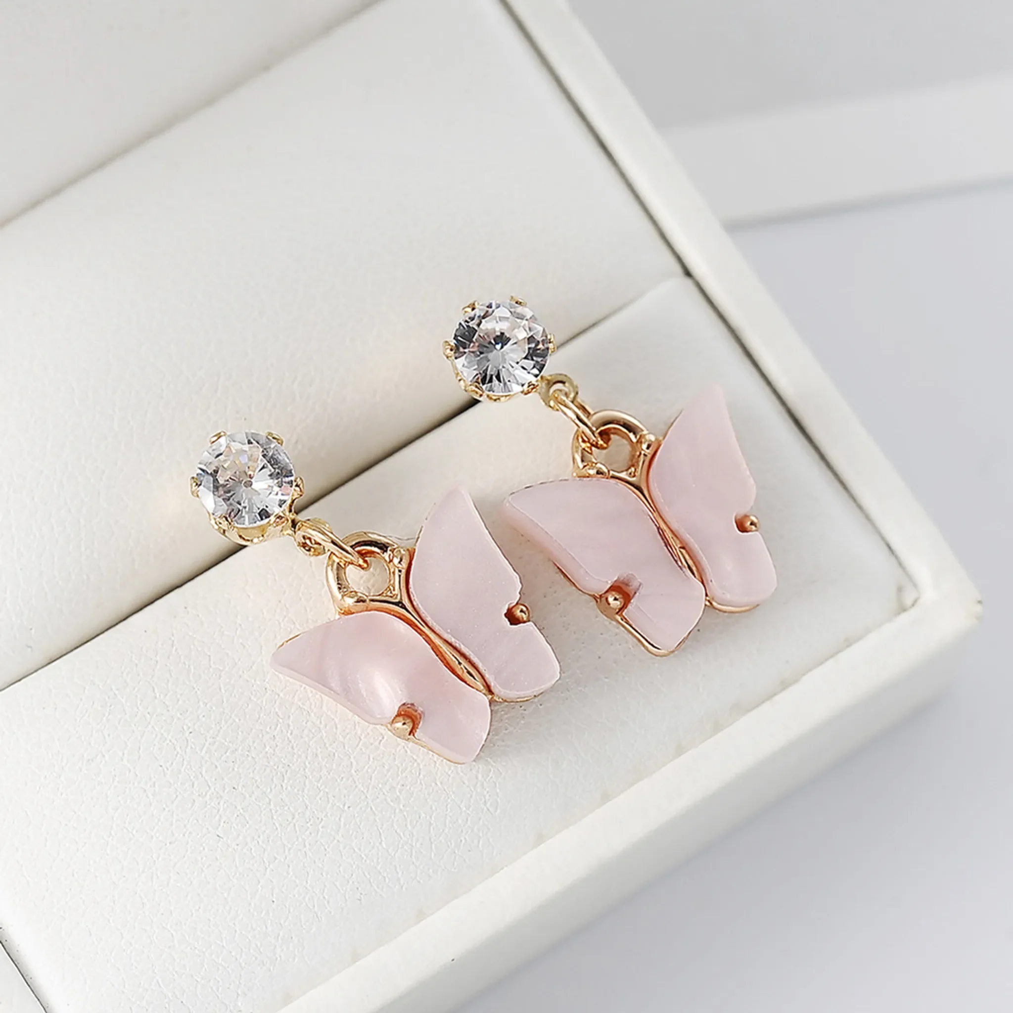 Produktinformationen "Damen-Ohrringe Schmetterling – Hellrosa, schlichter Stil"