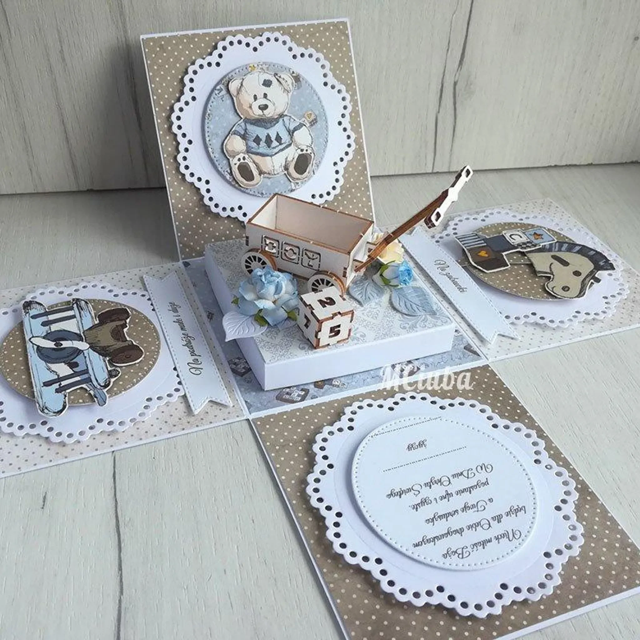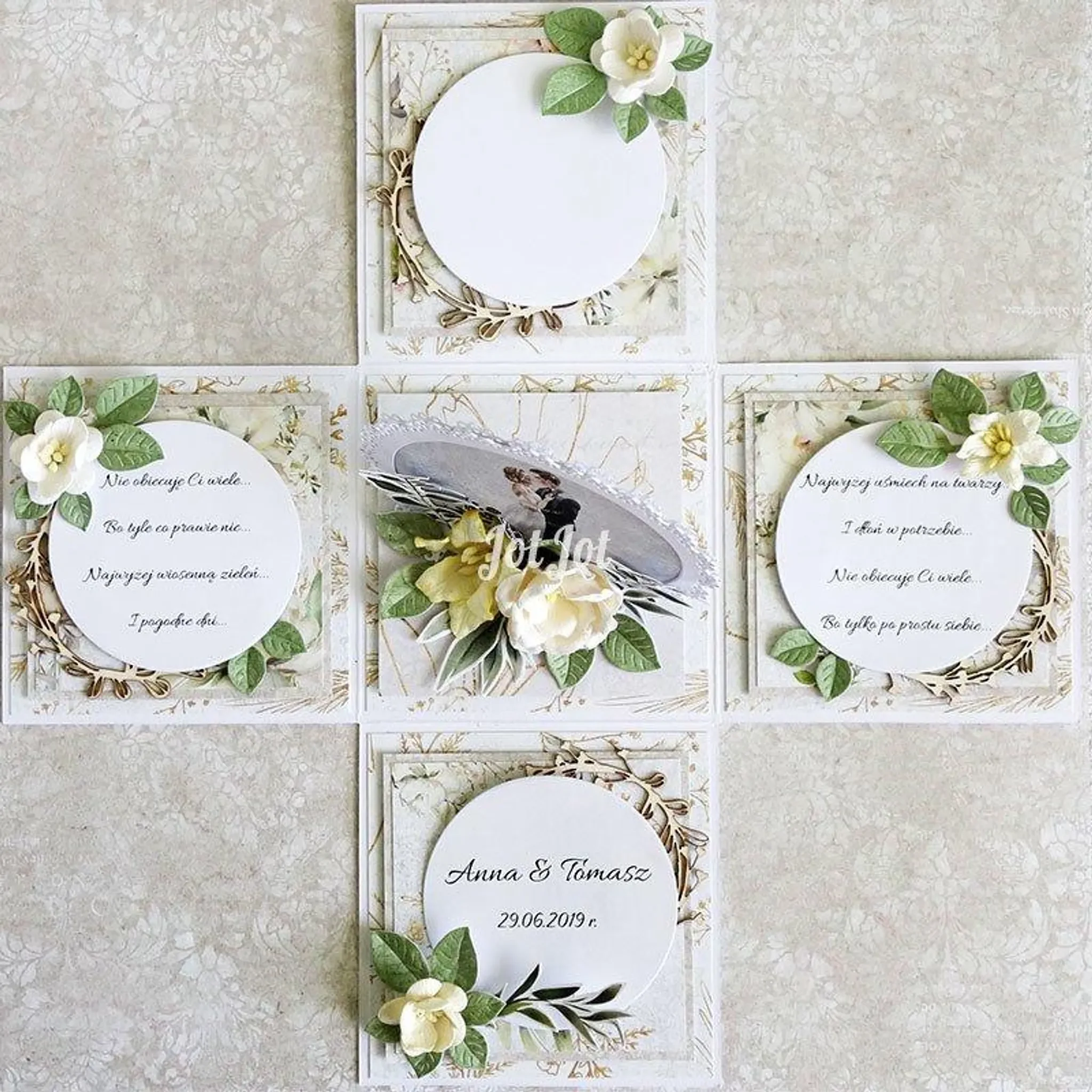Diese Exploding Box ist eine originelle Geschenkverpackung und eine stilvolle Alternative zur klassischen Grußkarte. Beim Abheben des Deckels entfaltet sich die Box nach außen und bietet viel Platz für persönliche Botschaften, Fotos und dekorative Elemente.