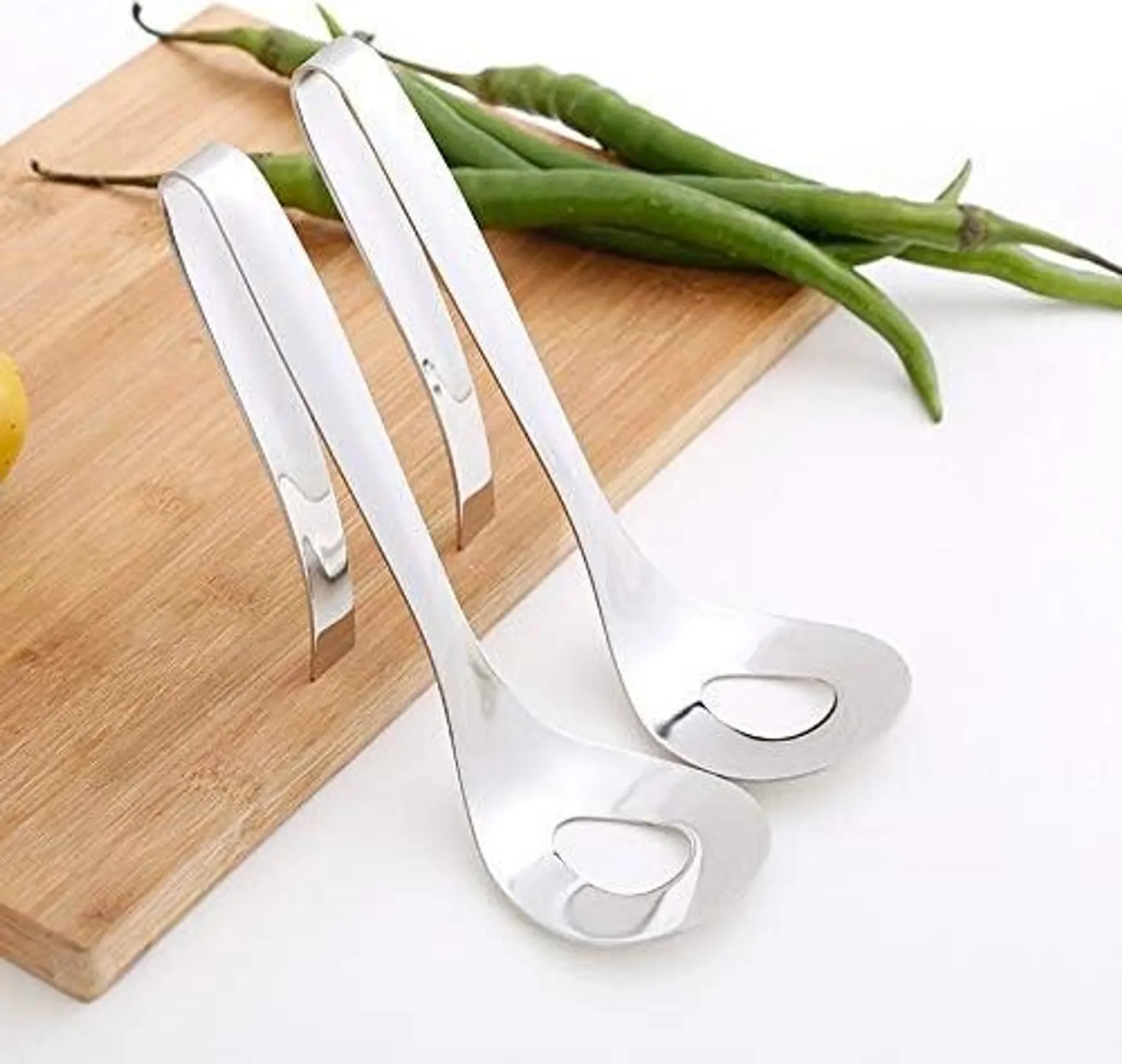 Gefertigt aus dickem, einteiligem Edelstahl mit fein polierter Oberfläche ist das Werkzeug langlebig, hygienisch und leicht zu reinigen. Der verlängerte, U-förmige Griff hält Abstand zur Hand, spart Kraft und ermöglicht komfortables Arbeiten; dank Aufhängeloch lässt sich die Zange platzsparend verstauen.