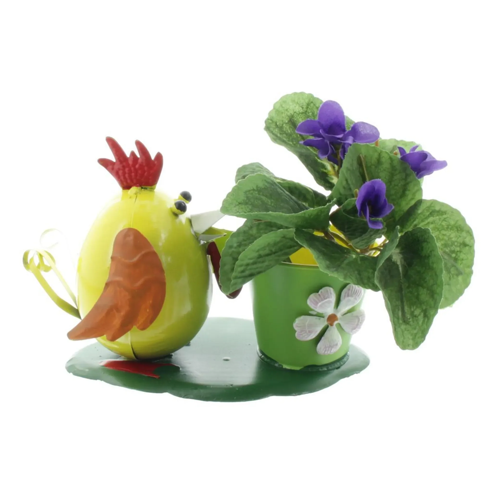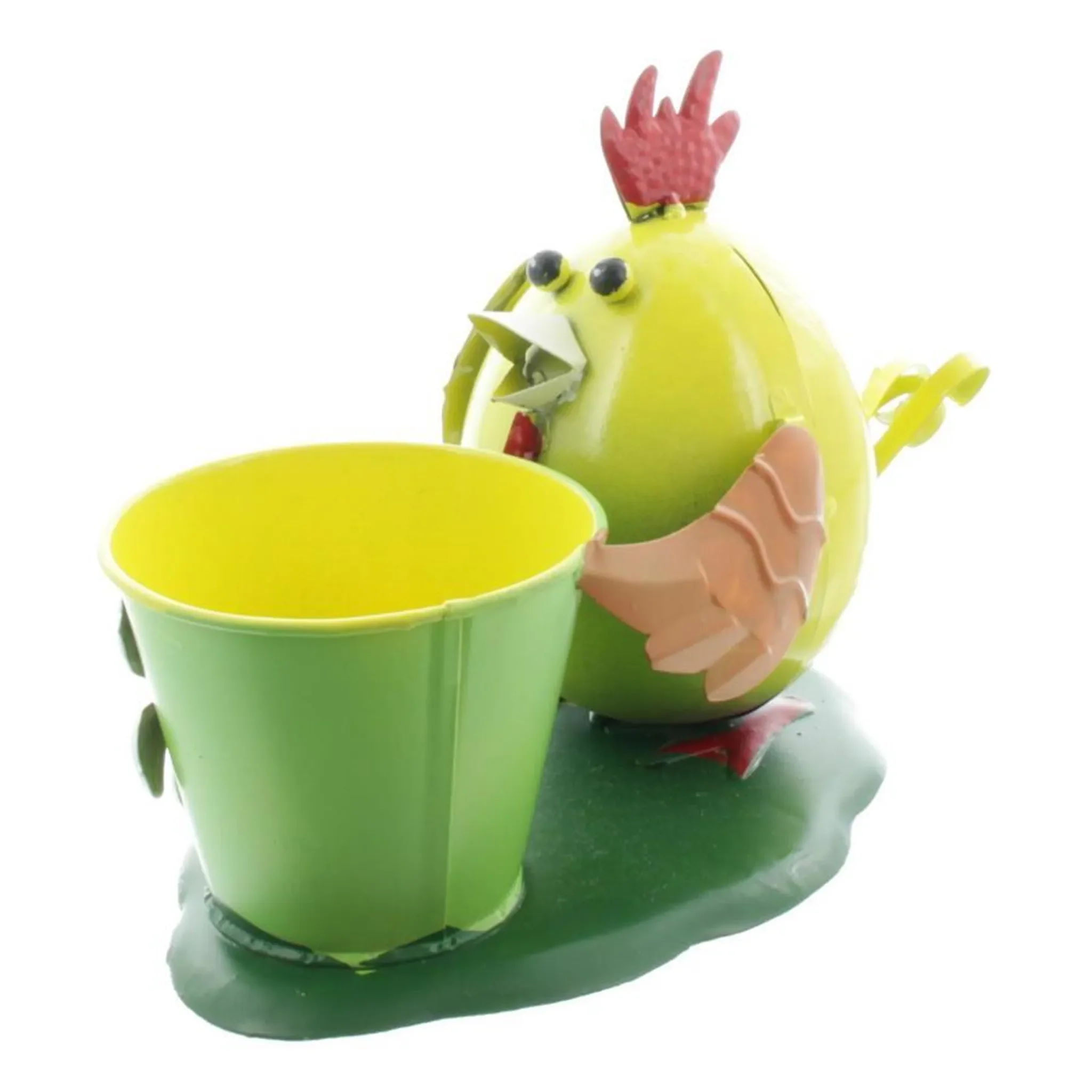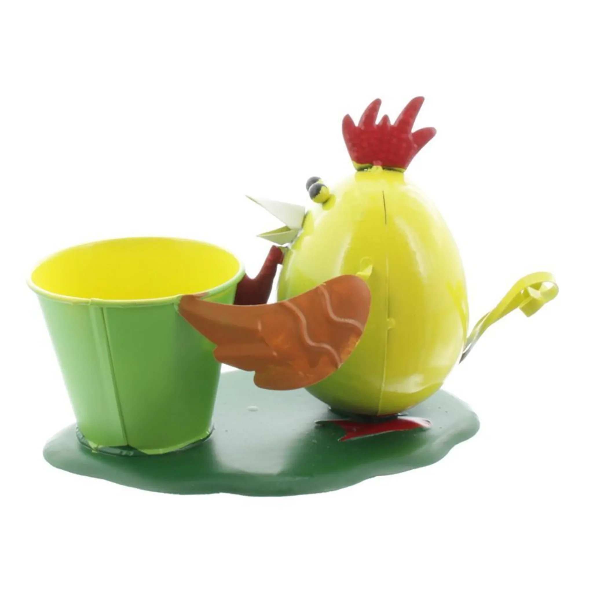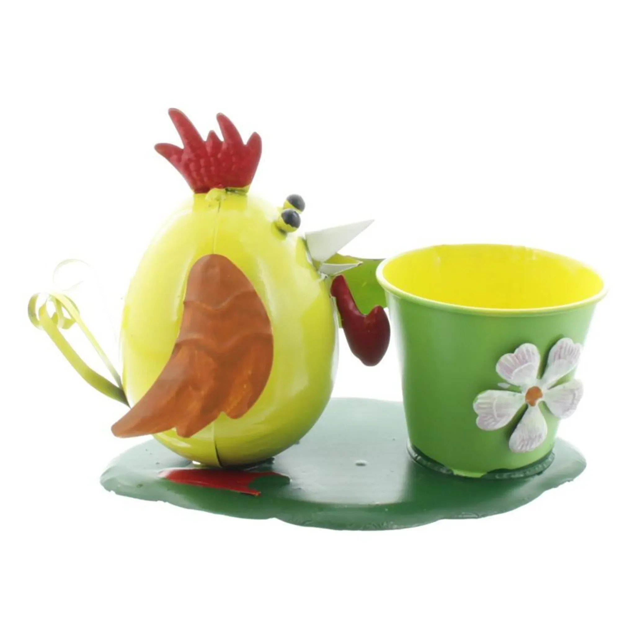 Gall & Zick Vogel mit Blumentopf – Dekofigur aus Metall, Gelb