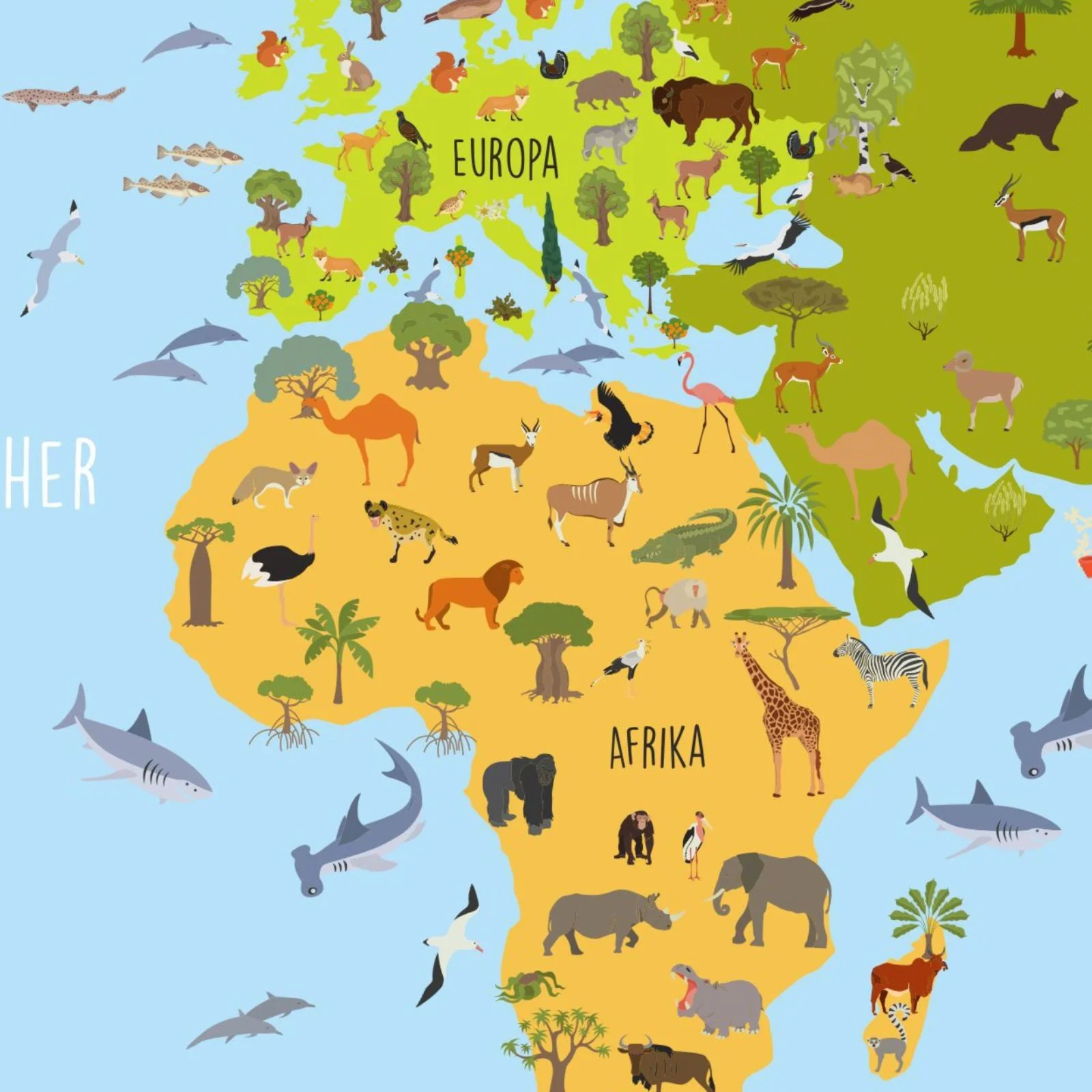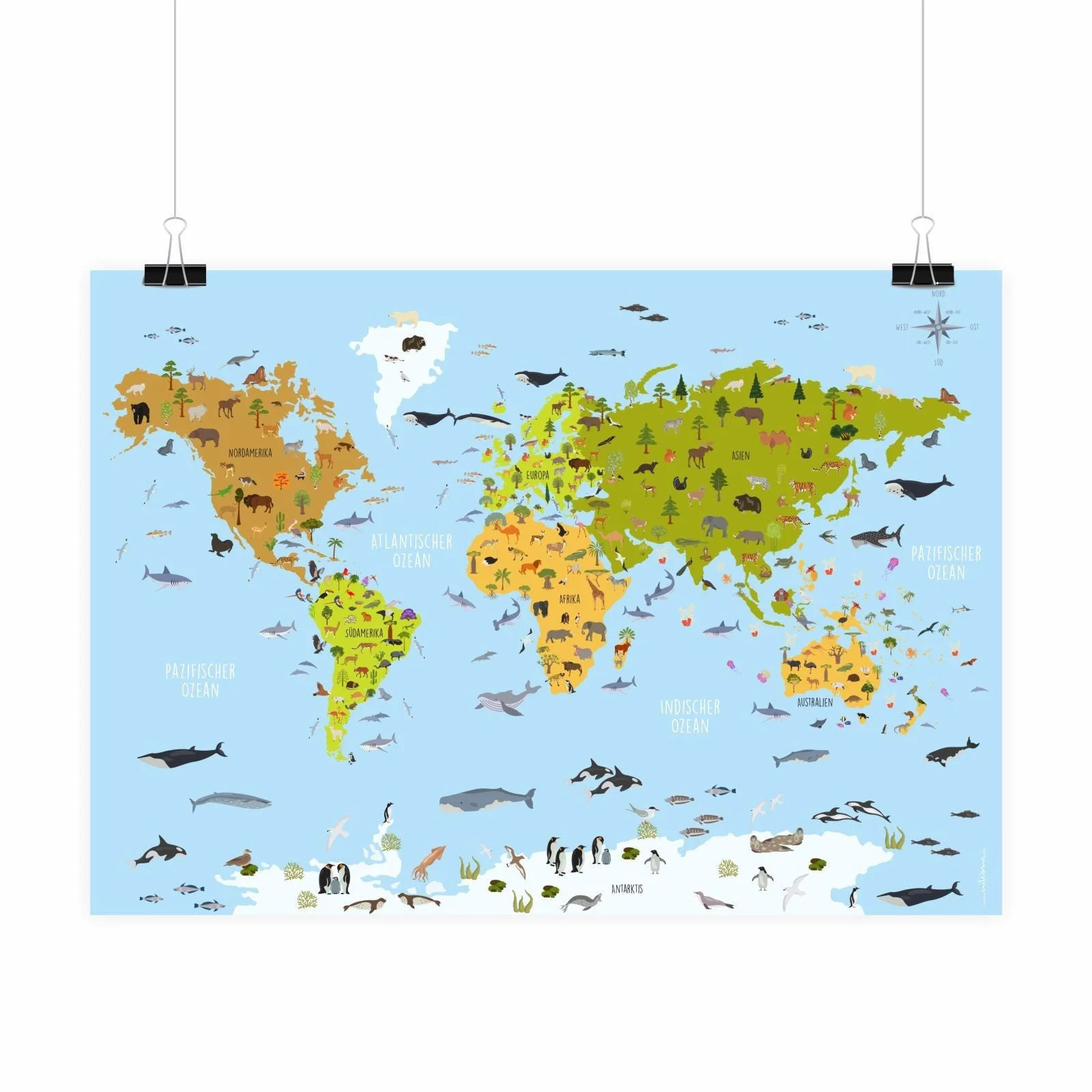 | Im Paket | 1 × Kinderposter Weltkarte Tiere in gewählter Größe |