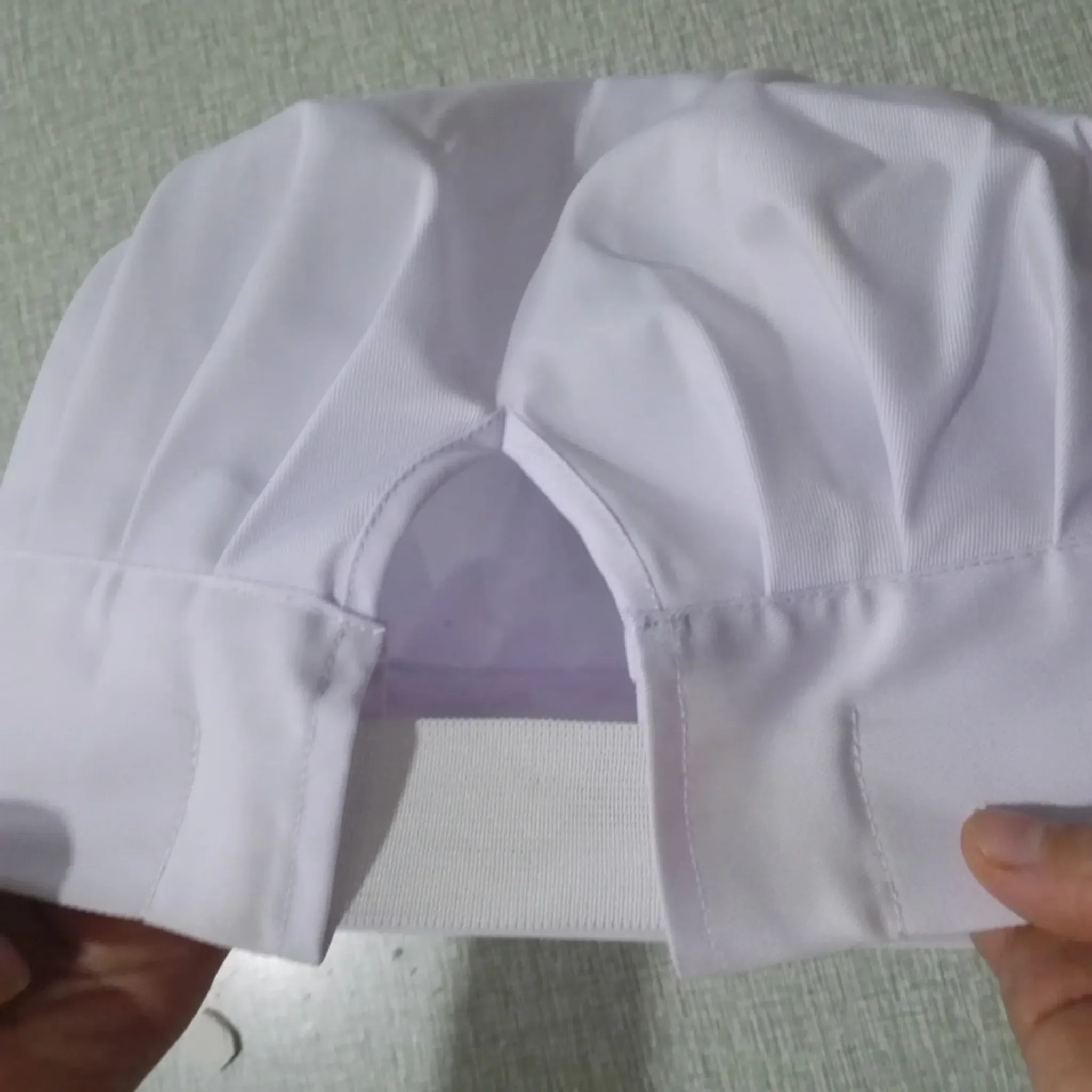 Der dreidimensionale Schnitt verleiht der Mütze eine saubere, professionelle Optik. Das integrierte Gummiband passt sich flexibel an und gewährleistet einen sicheren Sitz für die meisten Kopfgrößen – ideal für Küche, Catering, Backen oder Kostümzwecke.