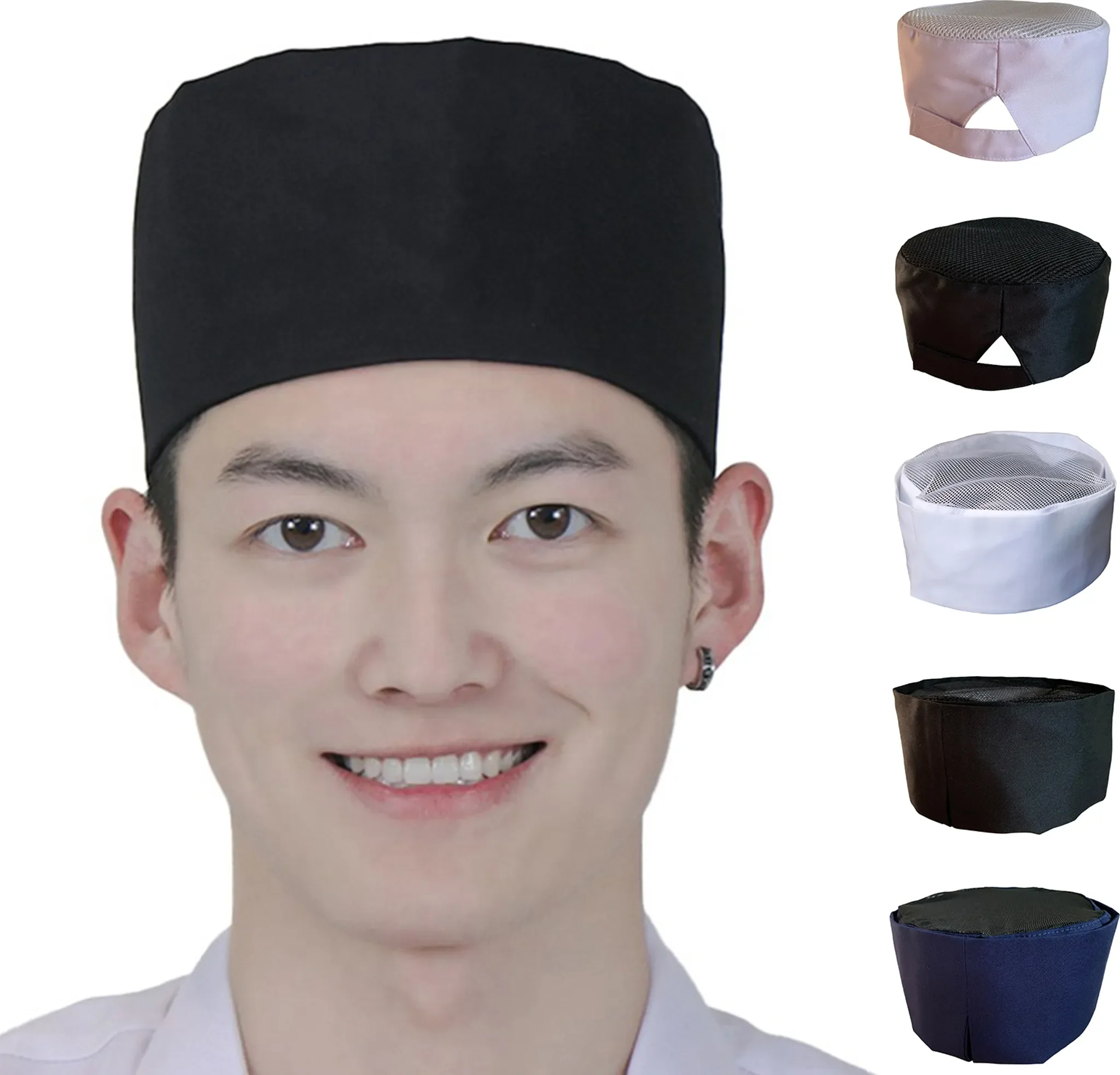 Kochmütze mit atmungsaktivem Mesh – flache Kuppel, Unisex