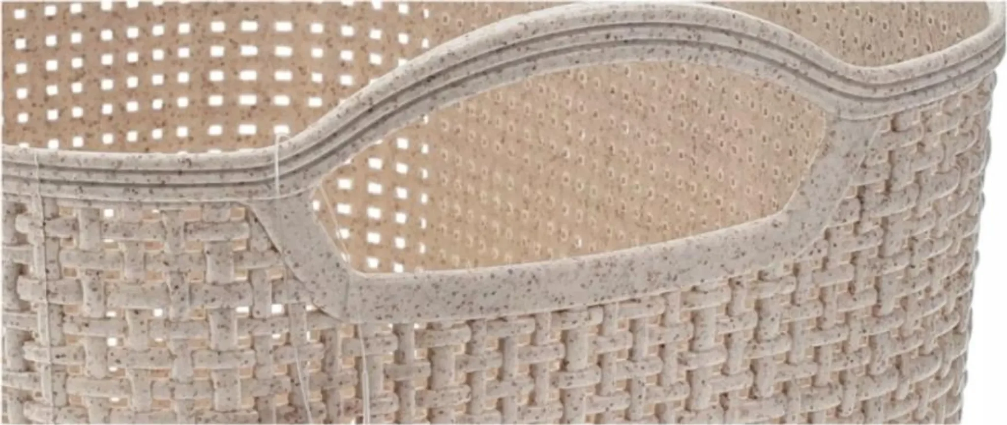 Das elegante Flechtmuster in Beige fügt sich harmonisch in unterschiedliche Einrichtungsstile ein. Dank der integrierten Griffe ist der Korb leicht zu tragen und vielseitig einsetzbar – ob in Küche, Bad, Büro, Kinderzimmer oder Kleiderschrank.