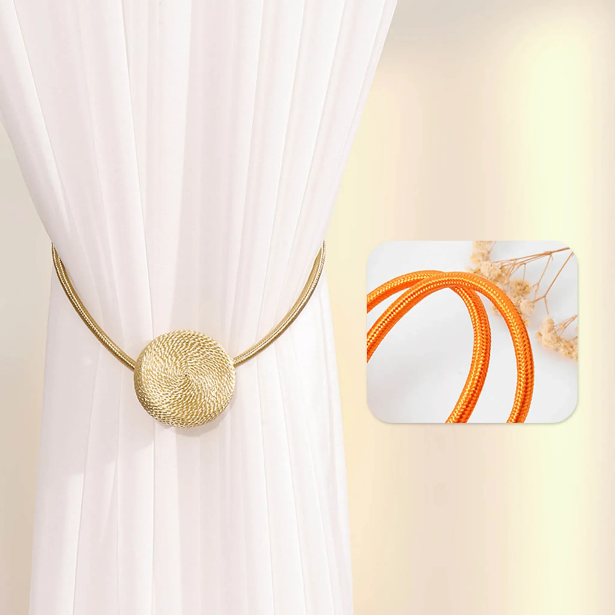 Bringen Sie Stil und Ordnung an Ihre Fenster: Diese magnetischen Vorhangschnallen im 2er-Pack halten Ihre Vorhänge sicher zusammen – ganz ohne Bohren oder Wandbeschädigungen. Das runde, elegante Design aus Polyester fügt sich harmonisch in moderne wie klassische Einrichtungsstile ein.