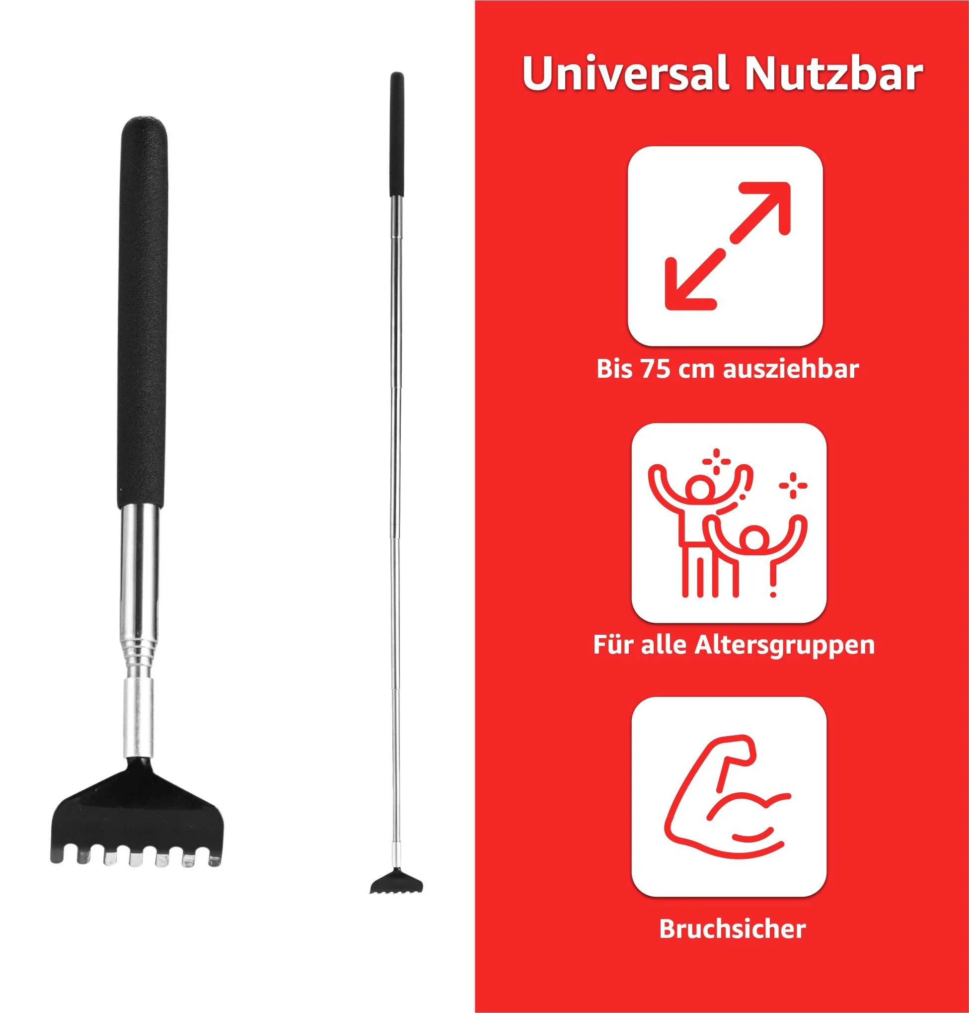 Highlights: Sofortige Linderung bei Juckreiz, teleskopisch verstellbar, vielseitig als Kratzer und Massagegerät einsetzbar, robuste Verarbeitung für dauerhafte Nutzung, praktisches Mehrfach-Set.