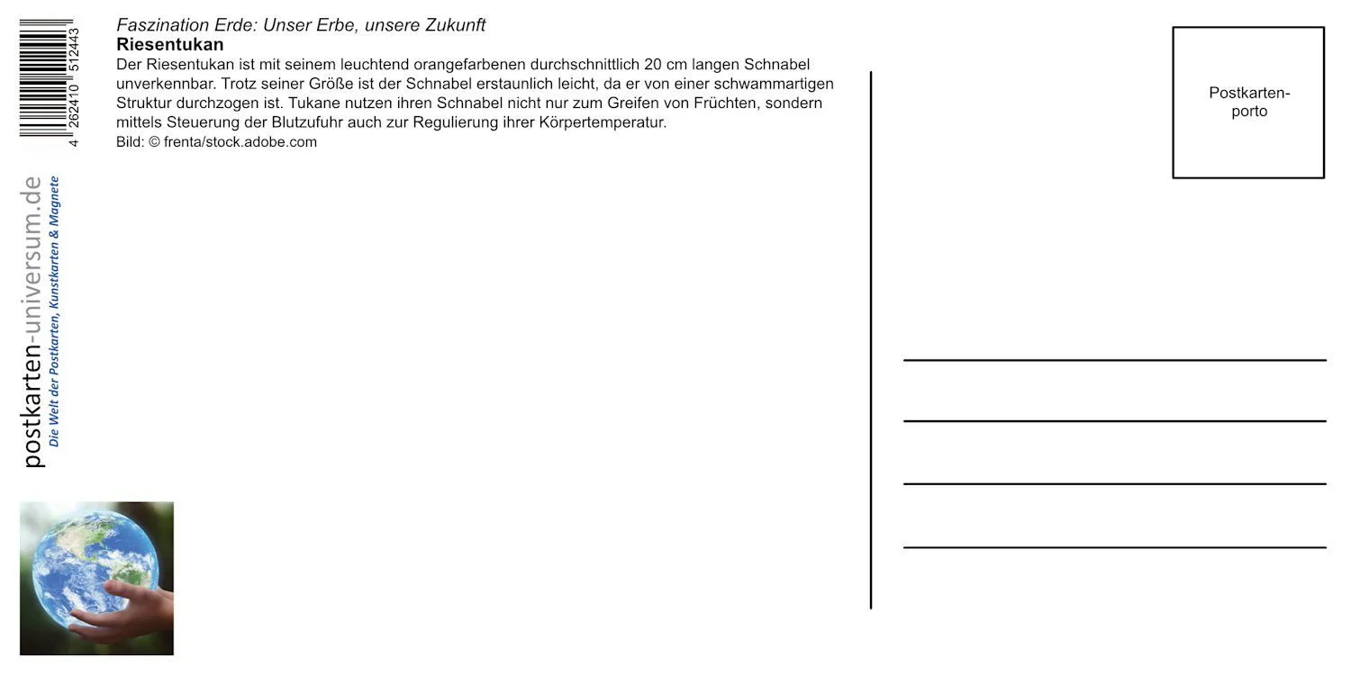 Produktinformationen "Panorama-Postkarte „Faszination Erde“ – Riesentukan"