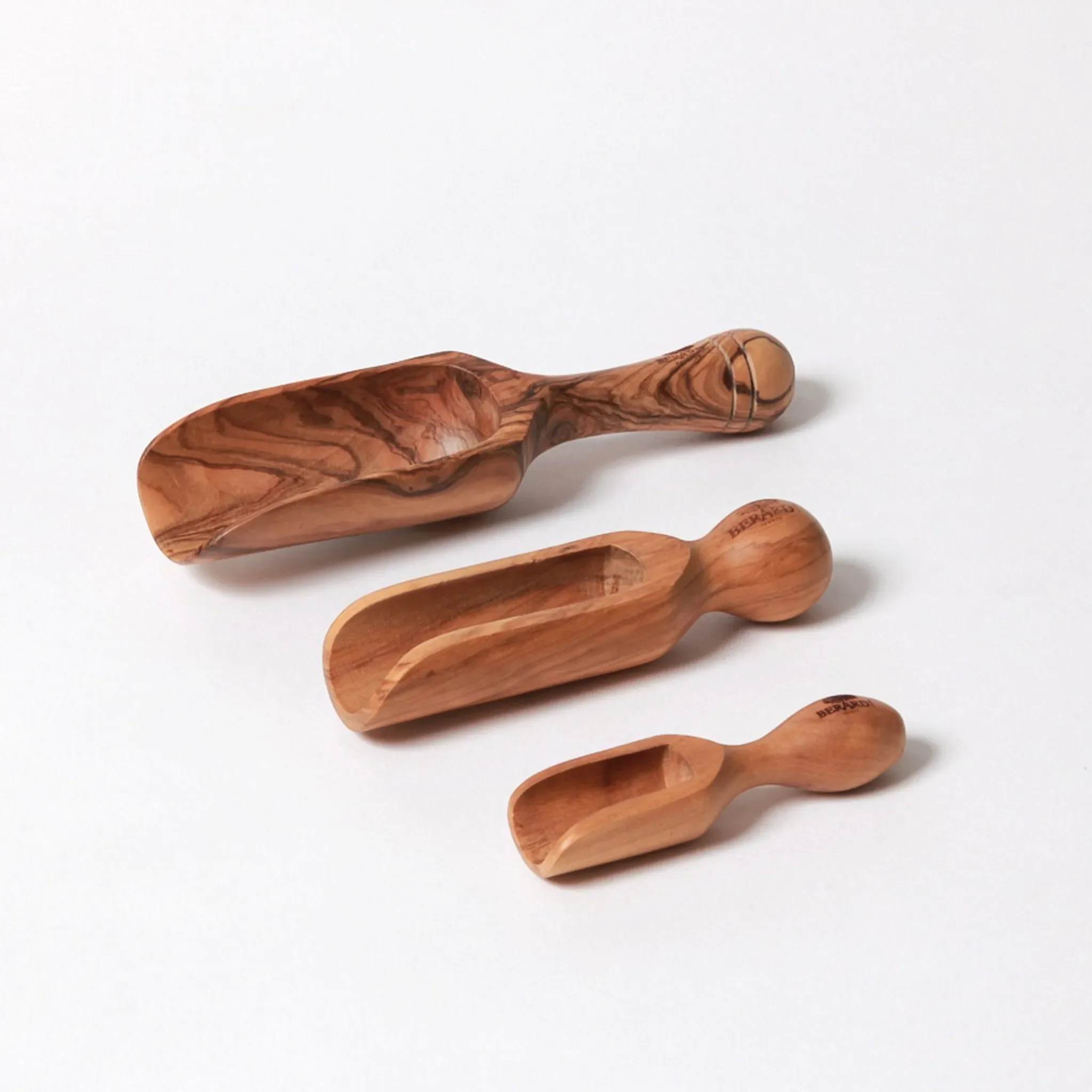Olivenholz gilt als Premium-Material für Küchenutensilien: Es ist besonders hart, langlebig und von Natur aus hygienisch sowie geruchsresistent. Jede Salzschaufel ist handgefertigt und überzeugt durch ihre individuelle, lebendige Maserung.